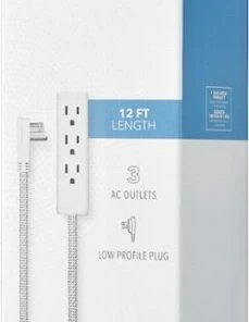 When your device’s cord doesn’t reach the power outlet, it’s time for another solution. The Insignia NS-PWRX30T 12′ 3-Outlet Extension Cable is here to help. Its generous 12 ft. cord length offers flexible placement options around your room, and three AC outlets let you connect multiple devices at one time. Its low-profile plug hugs the wall, keeping it close to the wall and out of the way. The 45° offset plug is grounded for safety and angled to leave other outlets accessible. Its 16-gauge construction makes it ideal for indoor use with small electronics while its simple white color blends seamlessly with many outlet plate covers. Now you can put your devices wherever they’re needed, regardless of power outlet placement.
