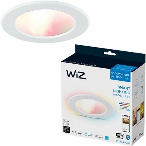 The WiZ LED full color downlight brings smart lighting for your daily living. Fit into your ceiling to create the ambience of your choice with 16 million colors as well as warm to cool white light. You can set schedule to turn lights on and off according to daily or weekly routines, control with your smartphone or your voice and have remote access to your lights even when you’re away. WiZ lights connect to your existing Wi-Fi, no additional hardware is needed.