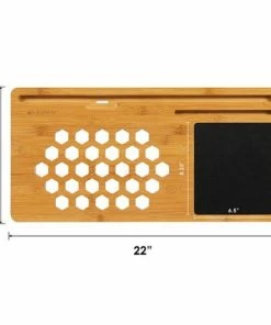 Inspired by the beauty and the durability of bamboo hardwood flooring, this LapGear Bamboo Lap Board will become your permanent work companion, whether on your lap, in your work space, or even on your dining table. Our eco-friendly, sleek design includes a space for your 15-Inch laptop, and integrated tablet dock and built-in media bar. The distinctive feature of this three-layered bamboo design is the vented tray with twenty-nine holes for improved air flow.