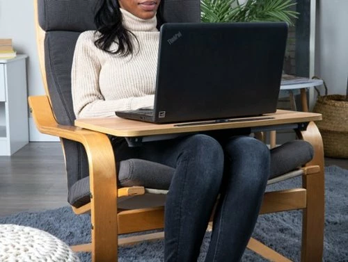 Balance your breakfast with ease using a Mind Reader adjustable lap desk. Breakfast in bed shouldn’t be a balancing act! Too many lap desks provide awkward, uncomfortable attempts at a flat surface. The Mind Reader lap desk offers a variety of positions for your comfort and convenience, so you can enjoy a versatile, multi-function solution that allows you to work or eat in bed, on the couch, or even on the floor. Anywhere you need a flat, stable surface, you’ll want this durable lap desk on hand. Unfold the legs for an elevated desk that fits over your legs, or fold them flat underneath. Designed with your comfort and accessibility in mind, this convenient lap desk can either lay flat across your lap, or unfold the legs underneath to create a freestanding work surface. The lightweight material provides a sturdy support for your books, breakfast, laptop, or even a handheld game console, and includes a slot to prop up your phone, along with a cup holder for drinks. A sturdy, lightweight construction and integrated carry handle make the whole desk ultra-portable. The whole unit can easily be stored in closets, under the bed, or beside a couch or loveseat for easy access. Buy a lap desk and take the strain out of reading or working from the couch or bed!