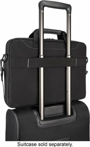 Simplify travel with this Targus Business Casual Slipcase TSS898 laptop briefcase, which offers a padded laptop compartment with a document divider and a front accessory pocket for your essentials. The shoulder strap is removable for versatility.