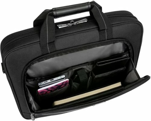 The 15.6” Classic Slim Briefcase is a thin, lightweight case equipped to store all of your essentials on the go. Ideal for the casual business executive, this functional case features a classic look for the classic professional. The spacious front pocket includes smartly organized compartments to store your smartphone, pens, business cards, adapters, cords, and other accessories. Constructed of durable polyester material, the case includes metal, contoured zipper pulls, and comfortable padded handles and shoulder strap. The large back slip pocket is great for storing files and documents while the included trolley strap makes it easy to stack this case onto rolling luggage.