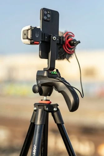 The JOBY Compact Action Kit is a fully featured powerhouse in the range. Featuring classic JOBY DNA, touch points have been refined to give a fun yet functional vibe and of course, it pairs perfectly with other products in the JOBY family. Prepare to be blown away, the Compact Action Tripod actually features the same QR plate as the genre defining BallHead 3K which is found on the GorillaPod 3K Kit. The world of JOBY is now in a full size package. Swapping between supports has never been easier. This kit is also supplied with a unique phone clamp, which features cold shoe mounts on both ends. With that sort of radness you get to add a light at one end and a mic at the other. Let the vlogging commence. The phone bracket also rotates within the mount, so you can swap from landscape b-roll to portrait dance-off in a matter of seconds. The pistol grip is both ergonomic and intuitive. Content creation on the go has never been so simple. There is even the option to lock out the panning feature so you can shoot in true movie mode. With a weight capacity of 3.3lb, this killer tripod also has super fast level leg locks on it’s legs. The dream has become a reality.