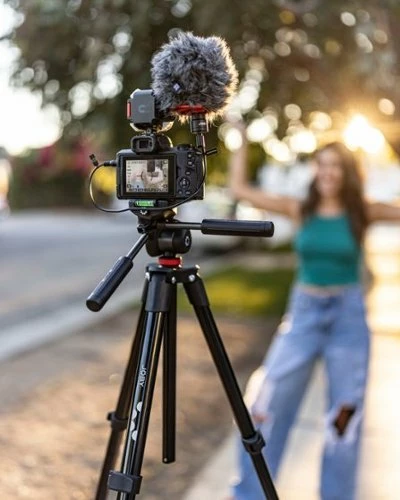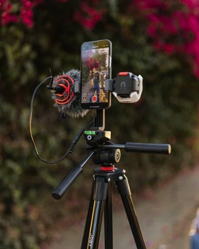 The JOBY Compact Advanced Kit is the clever sibling in the JOBY Compact Family. Featuring classic JOBY DNA, touch points have been refined to give a fun yet functional vibe and of course, it pairs perfectly with other products in the JOBY family. With a genius 3-way head design, professional looking content is only a few twists away. And check out the QR plate, It’s the same as the World Famous JOBY BallHead 3K which we use on the GorillaPod 3K Kit. That means swapping between your favourite GorillaPod and Full size tripod has never been easier. This kit is also supplied with a unique phone clamp, which features cold shoe mounts on both ends. With that sort of radness you get to add a light at one end and a mic at the other. Let the Vlogging commence. The phone bracket also rotates within the mount, so you can swap from landscape b-roll to portrait dance-off in a matter of seconds. For travel those nifty control bars fold back, so you can slide those legs away using the lever leg locks and throw this tripod on your back with ease. Don’t worry though, with a reinforced aluminium construction, this package can handle everyday use. What is more, with a solid 6.6 pound weight capacity, you can add the latest hardware to this tripod kit and not have to worry about it at all.