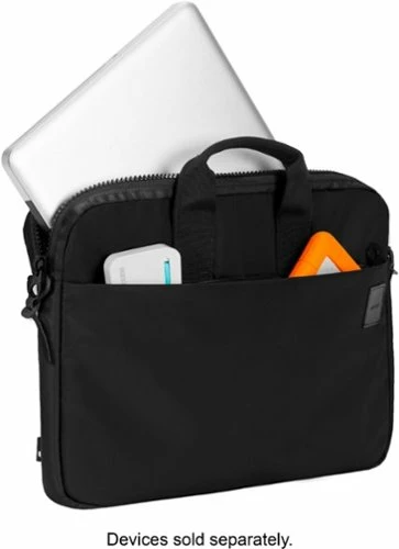 Take your device on the go with this Incase Compass flight nylon brief. The front pocket lets you get quick access to accessories, while the looped handle provides simple portability. This Incase Compass flight nylon brief features a cushioned shoulder strap for extra comfort, and the padded interior helps prevent scratches.