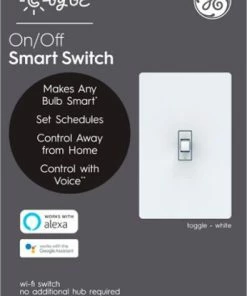 The On/Off Smart Switch-Toggle adds smart bulb functionality to traditional bulbs and keeps smart bulbs smart. The classic design blends seamlessly with other toggle switches. The smart Wi-Fi switch adds out-of-home control, scheduling and scene setting to traditional bulbs. When Cync or C by GE smart bulbs are installed, the smart switch allows app or voice control even when power is turned off at the switch. Pair the Smart Switch with Cync or C by GE Smart Bulbs in other fixtures like table lamps and control your all your lights in the room from one wall switch. This On/Off Smart Switch wirelessly connects with other Cync or C by GE Smart Switches so you can control the same light fixture from multiple switches without a travel wire, even if the switches are on different circuits. Simple DIY set up. The Smart Switch connects directly with Google Home and Amazon Alexa devices without a hub required. Neutral wire–usually a white or gray wire–is required.