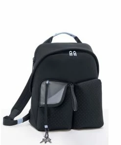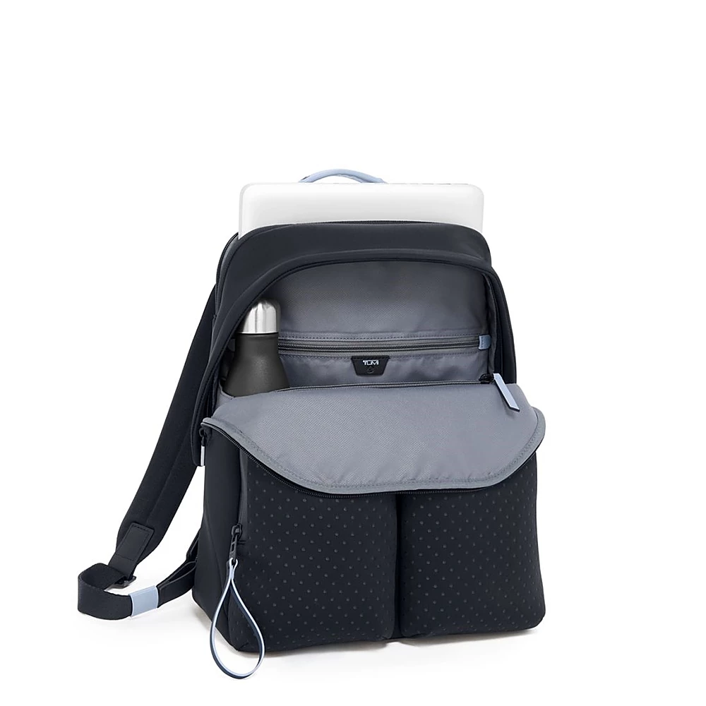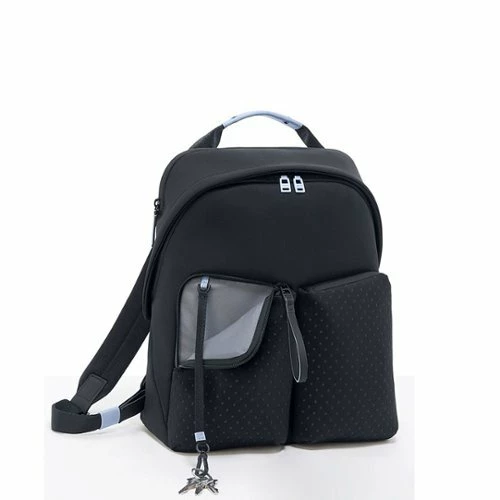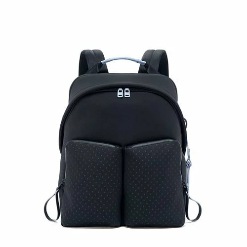 Compact and sustainable, this backpack uniquely features neoprene-like fabric integrated with recycled materials and perfectly carries what you need to get you through your day.