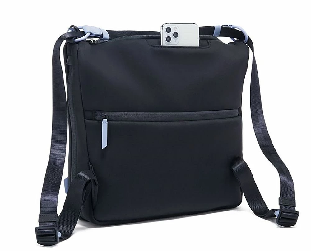 The Minna is a sustainable two-in-one bag, featuring neoprene-like fabric integrated with recycled materials. It can be worn as a relaxed hobo or turned into a backpack to change things up.