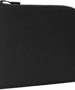 Protect your 13-14″ Macbook with the Incase Facet Sleeve in Black. It is a sleek, form-fitting design that conforms to the shape of your MacBook to retain a streamlined silhouette and shows off the beauty of your device while providing a strong, protective barrier against scrapes and scratches. Inside the sleeve, the fully padded interior cushions your machine from end-to-end and features two internal storage pockets to keep cords and accessories organized. Outside, the sustainable and durable 300D recycled polyester exterior, featuring a durable, water-repellent (DWR) coating, combines with the PU-coated weather-resistant zipper to keep moisture out and your MacBook dry. The subtle twill weave of the recycled polyester adds an appealing tactile texture while accentuating the sleeve’s clean lines and pure form. Model # INMB100728-BLK
