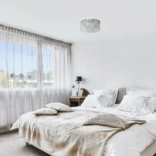 Luxury at its finest. This 2 light round crystal flush mount is the perfect accent piece for any room in your home. Elegant crystals are showcased on the flawless chrome base for a simple but glamourous look! This flush mount will compliment both contemporary and modern decor.