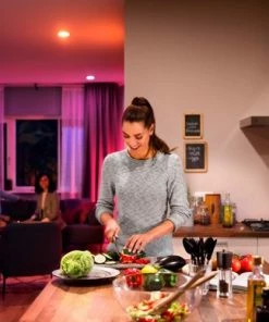 Add ambient color to any room with the Philips Hue White and color ambiance starter kit. Connect to the included Hue Bridge to take advantage of endless list of features. Control via the app, voice or included dimmer switch.