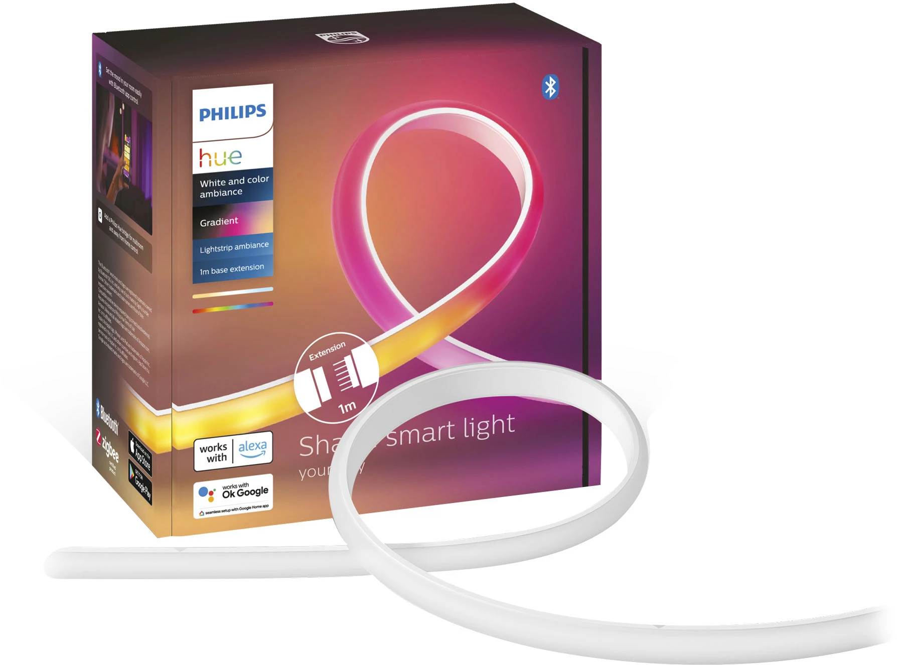 Extend the length of your Philips Hue ambiance gradient lightstrip with this 1-meter extension, covering a larger area with a blend of colorful light.