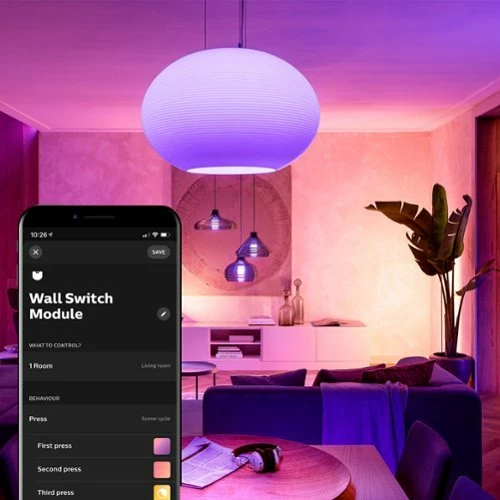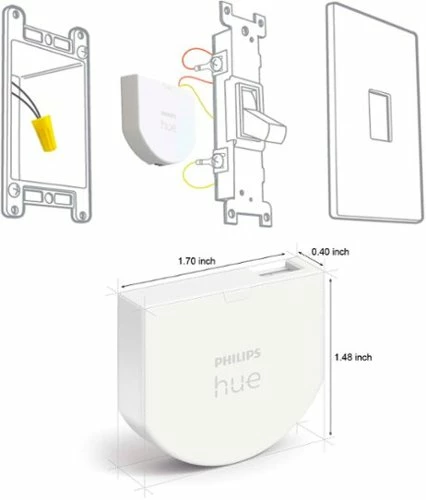 Installed behind traditional light switches, the Philips Hue wall switch module lets you use existing traditional switches in your home with your Philips Hue smart lights. Your lights always stay powered on — and you can set up to three light scenes in the Rooms or Zone you select. The Philips Hue Bridge (not included, sold separately) is required to use the Hue wall switch module.