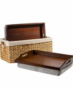 Best Buy LAP TRAY SET OF 2 WITH BASKET – NATURAL BAMBOO