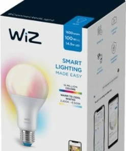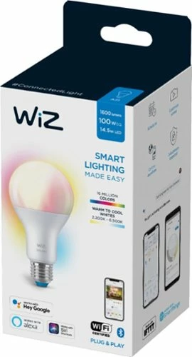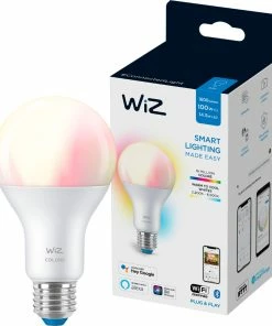 The WiZ LED A21 full color bulb brings smart lighting for your daily living. Retrofit into any lamp shade to create the ambience of your choice with 16 million colors as well as warm to cool white light. You can set schedule to turn lights on and off according to daily or weekly routines, control with your smartphone or your voice and have remote access to your lights even when you’re away. WiZ lights connect to your existing Wi-Fi, no additional hardware is needed.