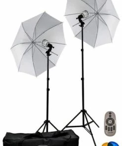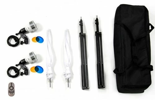 Illuminate your space with this Savage studio light kit. Its two dimmable LED bulbs provide 5500K daylight balanced light, and its remote lets you manage the lights from up to 50 feet away. This Savage studio light kit includes the cables, reflector umbrellas and light stands you need to set up your shoot.