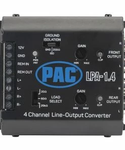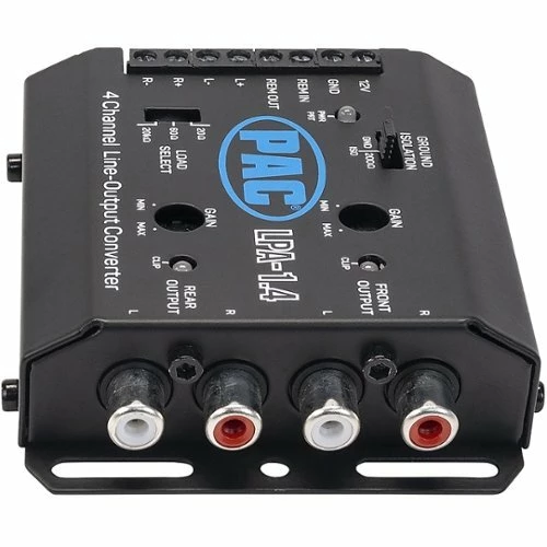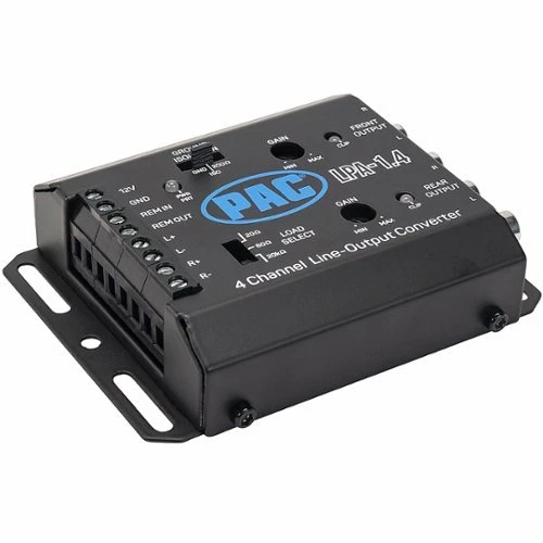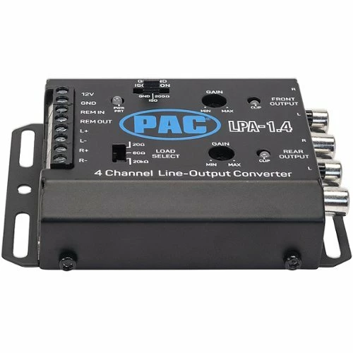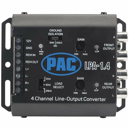Easily add an aftermarket amplifier to your vehicle’s factory audio system with the LocPRO Advanced 4-Channel Active Line Output Converter with Auto Turn-On by PAC. The LPA-1.4 converts speaker-level (high-level) audio signals to RCA preamp (low-level) signals so you can install an aftermarket amplifier without replacing your factory radio. This four-channel active line output converter can also be used to retain your vehicle’s OEM amplified audio system when replacing your factory radio.
