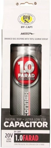 Boost the audio quality of your vehicle’s stereo system with this Metra One Farad digital capacitor. The capability to charge by using your car’s alternator provides on-demand power for your stereo, and a digital display clearly shows the working voltage. This silver Metra One Farad digital capacitor has a universal design for use with nearly all automobiles.