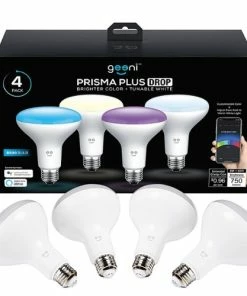 The Geeni Prisma Plus BR30 Smart Bulb turns your recessed ceiling lights into multicolor, dimmable, ambient lighting. A 65-Watt equivalent, 700 lumens, 2700K smart bulb that is dimmable to any level. Choose from millions of color variations or utilize 9 preset moods to turn your kitchen, living room or bedroom into the ultimate dance or party space, or switch to soft reading light, set at the perfect level as to not strain the eyes. Replace traditional recessed ceiling bulbs with the Prisma Plus BR30 Smart Bulb and take control over your lighting. Compatible with 2.4 GHZ Wi-Fi and the Geeni App, you can connect to Alexa and Google Assistant to utilize voice command lighting operation. Or, for more control, the Geeni app allows you to set timers and schedules or link smart bulbs and smart appliances together to create an automated smart home.