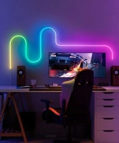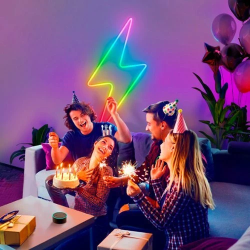 Discover a new creative way to light up your home’s spaces with Neon LED Strip Light. A bendable RGBIC rope light with a durable silicone exterior and brilliantly diffused light that can be flexed around corners and into different shapes. Let your creativity shine.