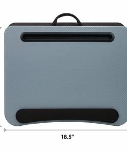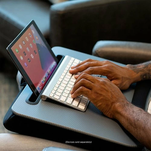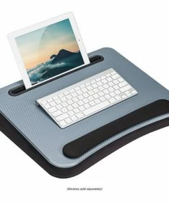 This LapGear Smart-e Pro Lap Desk is the ideal companion for those who switch back-and-forth between working and entertainment. Prop your 11-Inch tablet into the media slot for hands-free use at an optimal screen viewing angle or use the large work surface for your 17-Inch laptop. This Smart-e Pro Lap Deskβs memory foam lap pad is designed with an anti-tipping shape for comfort and piece of mind in your lap. The foam-padded wrist rest is an ergonomic feature that provides comfort while typing or completing any task on the surface. When youβre ready to head out, use the reinforced carrying handle to take this lap desk with you anywhere.