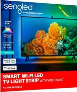 Enhance TV/Movie/Sports/Game time to a new level with this Sengled Wi-Fi LED MultiColor TV Lightstrip. Segmented light strips for super easy mounting. Control your lights in multiple ways – On/Off, dimming, color change, color temperature change, schedule, scene setting. Dynamic audio sync with build-in microphone for movie mode, game mode, music mode and more. Voice control using Amazon Alexa or Google Assistant.