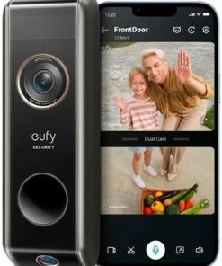 Best Buy SMART WI-FI DUAL CAM VIDEO DOORBELL 2K BATTERY OPERATED/WIRED WITH GOOGLE ASSISTANT AND AMAZON ALEXA – BLACK