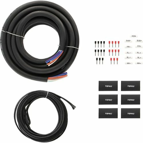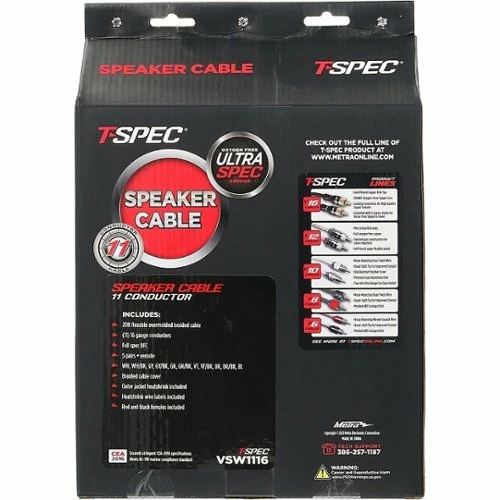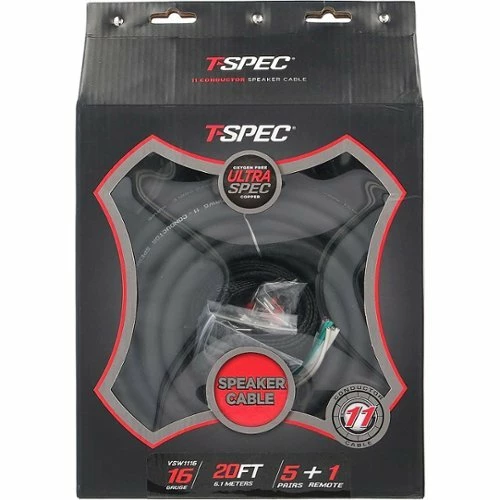 Upgrade your vehicle’s audio setup with this 11-conductor T-Spec 16-gauge speaker cable kit. The 20-foot length provides ample coverage and flexibility, while the braided cable cover resists wear and tear for lasting use. This T-Spec 16-gauge speaker cable kit includes a heat shrink jacket to protect termination points and labels for easy identification.