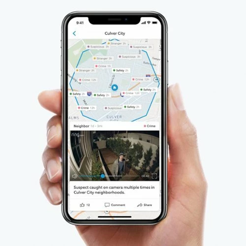 Monitor your property from your phone, tablet or PC with Ring Spotlight Cam Battery, a motion-activated security camera with LED spotlights, a siren alarm and a rechargeable battery pack. Ring Spotlight Cam battery lets you adjust your motion sensors, so you can get the ideal setting for you and your home. When anyone steps on your property and triggers your motion sensors, you’ll get an instant alert on your phone, tablet and PC. Answer the alert, and you can see, hear and speak to people on your property from anywhere.