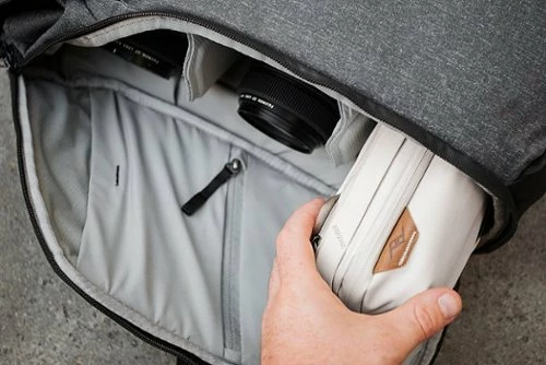 Whether storing cables, everyday gear, or travel essentials, Tech Pouch offers unrivaled organization and ease of access. Origami-style pockets create enormous spatial efficiency, letting you pack more into a smaller space while keeping your items neatly organized and easy to find. Elastic accessory loops keep items like pens, knives, SD cards, and batteries always within reach. Exterior handles and a clamshell-style opening make this pouch a delight to hold and access. External zip pocket has a cable pass-through for easy device charging. The 200D recycled nylon canvas shell is weatherproof and aesthetically clean. Tech Pouch is Fair Trade Certified and 100% carbon neutral.