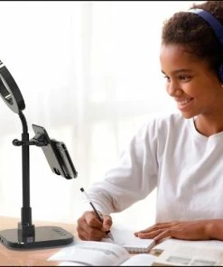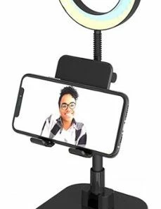 The Success Video Calling Smartphone Stand features a 6″ ring light with 36 LEDs, 3 light color temperature modes (3200K – 5600K) and 10 brightness levels. The neck of the ring light adjusts to your desired angle and tilts 20 degrees. The mount can be used with a Phone or Tablet, expands up to 7”.