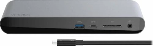 Connect multiple peripherals to your laptop with this Belkin Thunderbolt 3 Dock Pro docking station. The SD card slot offers easy access to mass storage devices, while the DisplayPort output lets you connect a UHD monitor for crisp, detailed visuals. This Belkin Thunderbolt 3 Dock Pro docking station has an Ethernet port for seamless connection to Internet networks.