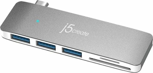 Expand the connectivity of your laptop with this j5create USB Type-C five-in-one UltraDrive Mini Dock. The plug-and-play design offers simple setup, while the three USB Type-A interfaces let you connect multiple peripherals on a single port. This j5create USB Type-C five-in-one UltraDrive Mini Dock features two memory card slots to accommodate SD and microSD media.
