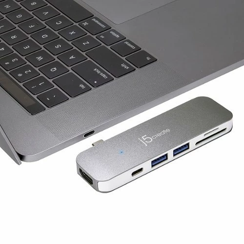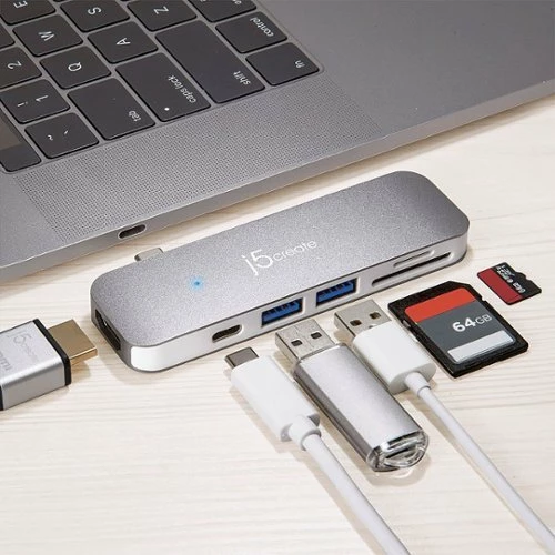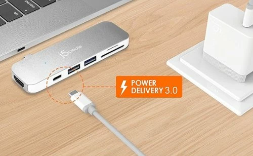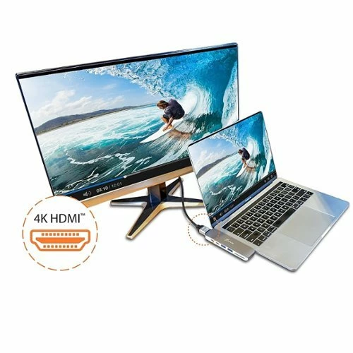 This USB-C multi-adapter with HDMI turns your laptop into a portable workstation, adding 4K video, two USB Type-A ports with support for USB Power Delivery and an SD & microSD port. You can power and charge your USB-C devices through its USB-C port while simultaneously powering the hub.