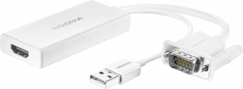 Whether youβre working, gaming or watching a movie, why settle for a small, single-monitor display? This Insignia NS-PCAVH VGA to HDMI Adapter can take your computer setup to a whole new level. Gift yourself a theatrical experience by mirroring the display from a VGA computer or laptop to any HDMI-enabled monitor. Or extend your existing display to a second monitor, making it easier to organize programs and windows for day-to-day use at work or while browsing. This adapter supports resolutions up to 1920 Γ 1080 at 60 Hz for high-quality video, and an attached USB cable lets you hook up your audio. Its hassle-free setup requires no additional software, letting you work hard and play harder.