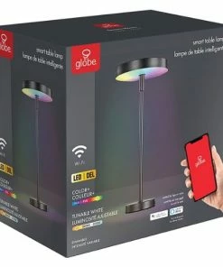 From sunrise to sunset, Globe Electric has you covered with smart lighting options such as this Wi-Fi Smart Color-Changing-RGB Tunable-White 7-Watt-Equivalent LED-Integrated Black Table Lamp. Simply plug it in, pair it with the GLOBE SUITE app, and you’re ready to go. Stylish and functional, this lamp adds a modern element to any room while letting you create the ideal lighting atmosphere for any situation. A sensitive on/off touch switch works with a gentle, subtle tap to turn it on and allow you to start using the smart functionality. Using the app, you can make sure your lamp comes on when you arrive home. Or create different moods for different times of the day. Or simply make sure your lamp comes on and turns off at the same time every day to conserve energy. Plus, the tunable white feature mimics your circadian rhythm by allowing you to have bright white light in the morning and then a relaxed warm light for evenings. And that’s not all. This lamp lets you change the color of your room so you can create the perfect mood for any situation. The choice is yours and the options are plentiful. Home automation has never been so easy—or so smart!