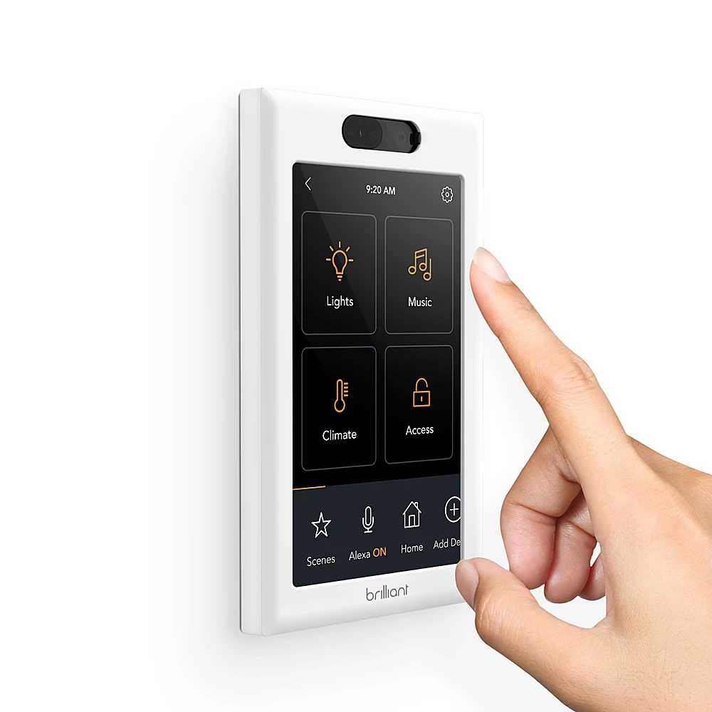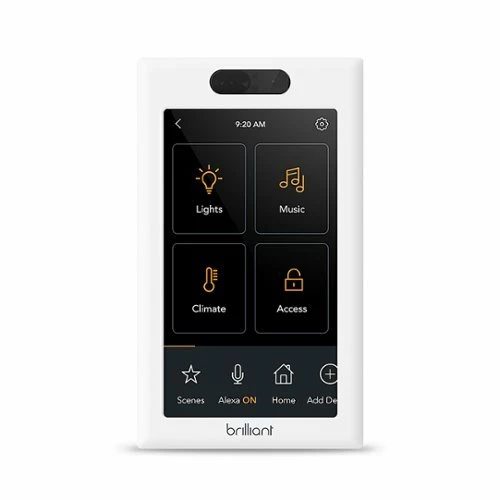 Brilliant is a touchscreen control panel with built-in Alexa voice control that makes it easy for anyone to control popular smart home products and experiences: lighting, cameras, locks, garages, music, climate, intercom, scenes, and more. Available in four models to replace a 1-gang to 4-gang light switch panel. Select the room or rooms where you want to add easy smart home access and install a Brilliant Smart Home Control in the place of any standard light switch panel. After installing, instantly gain control of your smart home products via a touch screen display or all-in-one mobile app. White snap-on frame included. Brilliant works with a growing list of the top smart home products including Alexa, Google Assistant, Apple HomeKit, Google Nest, Ring, Sonos, Hue, LIFX, Honeywell Home, Ecobee, Schlage, Yale, August, Genie, Wemo, TP-Link, SmartThings, and more.