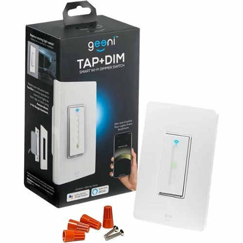 Get smart about your home lighting with this Geeni TAP + DIM smart dimmer switch. The smooth touch area lets you make precise dimming adjustments, and the Wi-Fi connectivity adjusts lighting remotely. This Geeni TAP + DIM smart dimmer switch is compatible with popular virtual assistants so you can control your lighting using voice commands.