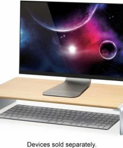 Best Buy WOOD MONITOR STAND WITH DOCKING STATION – NATURAL WOOD GRAIN, TAN